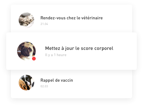 Un rendez-vous chez le vétérinaire ? Un rappel de vaccin ou un score corporel obsolète ? My Royal Canin se charge de vous rappeler tous les rendez-vous importants de la vie de votre animal de compagnie.